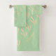 Personalise Beige Leaf Repeat Pastel Green Bath Towel Set
