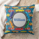 An Automotive Pattern For Kids Designed In A Blue Throw Pillow And Patterned In Colourful Cars Just Add The Child's Name.