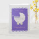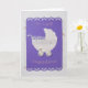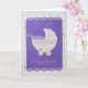 Personalise, Hand-cut cute baby stroller with lace, glued two pearls buttons on the wheels and on purple lace for the birth or baby shower of a baby girl on greeting card.