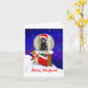 The cutest personalised Christmas greeting card for family and friends is this unique dog photo on a rooftop over the holidays with reindeer carrying a Santa bag full of dog toy goods. You may instantly change the photo to show your dog wearing a Santa hat and emerging through the chimney. The inside message may also be customised to meet your specific needs.