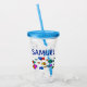 Colourful cartoon fish swimming around the cup. Customise with a name.