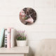 Personalise (add your text, or change the image) Flamingoes birds in Love on their nest photography on any Acrylic Wall Clock (square, round large or medium) with hour & minute dials (hour markers).