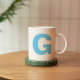 Personalise Modern Script Blue Initial Monogram Coffee Mug