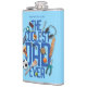 The flask itself is fine. It’s a cheap flask, obviously bought in bulk, however am prepared to overlook that. Given that it is a personalized item, I would have liked to have seen gift boxing instead of the generic packaging. Terrible printing, and/or quality. It’s a cheap, tacky vinyl. It is not cut straight and is also applied in a way that it is overhanging the bottom, causing the glue to catch on items and it will eventually roll and tear, damaging the wrap.