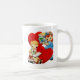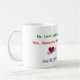 Cute Mr. and Mrs. Married mug for a bookish couple with an image of two kids handling books and two large red hearts, and customisable texts for his and her names and the date of their marriage. The design also includes a heart and the word "MARRIED" like a stamp on it. Note that you can change the image, if you wish.