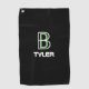 Personalise Name & Initial White & Sage, Black Golf Towel