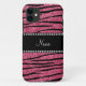 Personalise name pink glitter zebra stripes Case-Mate iPhone case