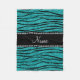 Personalise name turquoise glitter zebra stripes fleece blanket