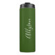 Personalise Name White Script Vertical ForestGreen Thermal Tumbler