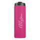 Personalise Name White Script Vertical, Fuchsia Thermal Tumbler