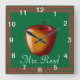 Personalise Pattern Apple Art Name Teacher Class Square Wall Clock