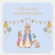 Personalise this Peter the rabbit 1st Birthday design with a child's name and the event.