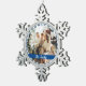 Celebrate the holiday season with our beautiful snowflake ornament. This stunning ornament is elegantly designed with a delicate blue and white patterned border that enhances the festive spirit.