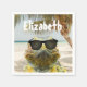 After an agonizingly long winter of cold and darkness, it is time for warmer temperatures, bright sunshine, lighter clothing and vacation. Are you ready to head for the sandy beach and blue waters of the ocean or is it a staycation you have in mind? Either way, this dragon lizard in sunglasses on the beach is ready for the good times as summer is coming. Make your beach or birthday party a special treat with this personalised product that you can customise to whatever you like. It’s easy to change the name shown to one of your choice, or use the edit feature for more extensive customisation.