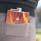 The flask itself is fine. It’s a cheap flask, obviously bought in bulk, however am prepared to overlook that. Given that it is a personalized item, I would have liked to have seen gift boxing instead of the generic packaging. Terrible printing, and/or quality. It’s a cheap, tacky vinyl. It is not cut straight and is also applied in a way that it is overhanging the bottom, causing the glue to catch on items and it will eventually roll and tear, damaging the wrap.