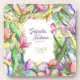 Elegant and colourful Square Coaster. Designed with watercolor outlined floral illustration. PERSONALIZE and EDITABLE text. Fill with your own words. Choose your preferred fonts available in the store.