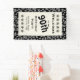 Personalise: Welcome to my 90th Birthday Party. A large white banner with black text and templates to make it easy for you to change to your own words. You can personalise all of the text using the supplied templates. The sign is trimmed with black stars and hash lines. A great black and white birthday party theme.