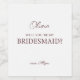 Looking for a unique way to propose Bridesmaid? Our personalised "Will You be My Bridesmaid?" wine bottle labels are the perfect gift to propose to your bridesmaids. The label on this wine bottle is sure to add a special and memorable touch to your gift.