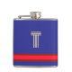 Personalise With Your Initial Blue + Red Stripe Hip Flask