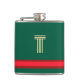 Personalise With Your Initial Green + Red Stripe Hip Flask