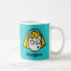 This coffee mug has Personalise Your Name with a Funny Cartoon Face on Blue Green Background.