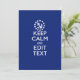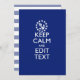 A personalised keep calm saying, with an American yacht flag nautical symbol on a navy blue decor. A sporty custom nautical style gift for yourself or for someone special, on or off the boat.