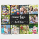 Personalised picture blanket with your own 10 photo collage. The wording reads "family life is the best life" and you can edit the word "FAMILY" if you wish (for example Mum / Dad / Beach etc). The design is black and silver grey, with hand lettering and bold typography. The photo template is set up for you to add your pictures, working clockwise from the top left. For more colour please browse my store - alternatively, you can click "customise further" to choose your own colours or message me for assistance.