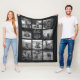 Personalised elegant photo fleece blanket features a black background that can be changed to any colour, Simply add 11 photos of your choice and your own personalised text in chic handwritten script calligraphy and modern stylish typography. Makes a wonderful keepsake gift for yourself, your family & friends. Perfect holiday, wedding, baby shower or birthday gift! Exclusively designed for you by Happy Dolphin Studio. If you have any questions or would love a matching product, please contact us through our store.