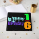 Lettering design with big numbers (age), name, Happy and Birthday in multicolored version. Design on hard cover guest book with text for 16th birthday to customise. You can easily change text (colour, font, size and position) by clicking the customise button. Other models are available. Matching birthday greeting card.