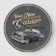 This is a rendering of a classic car created using coloured pencils and markers with a retro styled background.