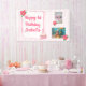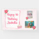 Pretty pink floral striped first birthday theme for a baby girl. Personalise this birthday banner by adding your baby's photo and name in the customise area.