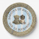 Cute personalised country and western little baby cowboy baby with a teddy bear and cowboy hat and boots birthday party paper plates.