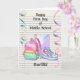 A personalised happy first day of middle school card for your daughter, sister, granddaughter, etc. The front features a backpack, notebook and cute shoes along with some pastel streamers against lined school paper on the front of the card. You will be able to easily personalise her name and the inside card message can also be personalised if wanted. This is a wonderful way to support and encourage her when she starts middle school years.