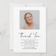 This photo collage memorial thank you card has 25 photos, can be for him or her, is perfect for giving out at a funeral, wake or memorial service. The memorial thank you cards is easy to personalise and the font styles, size and font colour can be changed by clicking on the customise further link after personalising.
