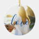 Create your own personalised photo and script text Christmas Ceramic Ornament with this elegant, classic blue, modern and simple minimalist template. Just add your photos and text. Make your own photo collage keepsake perfect as custom gifts for showing your love. Any colour, any font, no minimum.