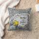 Here is a whimsical intricate floral themed 30th wedding anniversary pillow that you can personalise for a special bride and groom! Two prothonotary warblers perch on a decorative floral pattern border made of silver coloured flowers and artistic swirls. The birds sit beside a space for two names and a wedding year in script text.