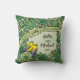 Here is a whimsical intricate floral themed 35th wedding anniversary pillow that you can personalise for a special bride and groom! Two prothonotary warblers perch on a decorative floral pattern border made of flowers and artistic swirls in shades of green. The birds sit beside a space for two names and a wedding year in script text.