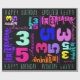 Customisable 35th Birthday Wrapping Paper with repeating large numbers, "Happy Birthday" and name. You can easily change text (colour, font, size and position) by clicking the customise button. Other colours are available with dark and purple flowers.