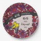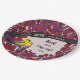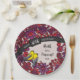 Here is a whimsical intricate floral themed 40th wedding anniversary paper plate that you can personalise for a special bride and groom! Two prothonotary warblers perch on a decorative floral pattern border made of flowers and artistic swirls in shades of red and purple. The birds sit beside a space for two names and a wedding year in script text.