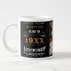 Say Happy 40th Birthday. Add your name, year and photo to this personalised giant birthday coffee mug. A wonderful custom birthday mug, with black white and gold vintage style typography. More gifts and party supplies available with the "Legendary" design in the store.