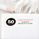 Personalised Fiftieth Birthday return address label with a modern design in Black and white, with muted pink letters with a touch of stylish script that match the design in our 50 and Fabulous Party Suite.