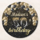 Personalised 50th Birthday Black Gold Round Paper Coaster