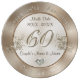 Personalised 60th Anniversary Gifts for Parents.beautiful tailored look 60th Anniversary rosary plate. Type in your parents names and wedding to anniversary dates in the two text box templates to your right. CALL Designer Linda for HELP and CHANGES:,239-949-9090 Beautiful understated diamond representing parents 60th wedding anniversary surrounded by neutral taupe and champagne colours and platinum look swirls, 60 and "Happy Anniversary" and "Dad and Mum" on the outer circle. You or Designer Linda can Remove any parts of the design or text.