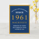 Personalised 60th Birthday 1961 Blue Gold Chic Card