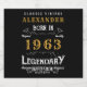 Personalised birthday born in 1963. Add your name birthday sparkling wine bottle labels. Edit the name and year with the template provided. A wonderful custom black birthday idea. More gifts and party supplies available with the "Legendary" design in the store.