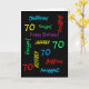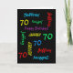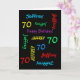 What a wonderful, personalised greeting card for a 70th birthday or any other occasion. On the cover, Name and Age repeats in different fonts and colours on a black background. Easy to personalise - just CHANGE NAME, AGE, and OCCASION in ONE PLACE. Supports name up to 9 characters. A colourful and fun Birthday CARD. Kids, teenagers, and adults will love it! Also easy to modify inside text, if desired. All Rights Reserved © 2014 Marcia Socolik.