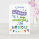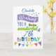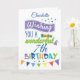 Wish someone a wonderful 7th birthday in style. This bright and colourful card is suitable for a wide range of ages - as the age number can be changed. Features cute typography in a mix of blue, purple and green colours. Small gifts, pennants and stars add to the birthday celebration.