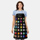 This artist's apron is decorated with a colourful watercolor abstract pattern on a black background.