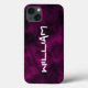 Personalised Abstract Multi-Colour Purple iPhone Tough Case. Customise this great phone cover with your name, or any word you like. Colourful case includes shades of purple. Text is white.