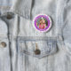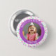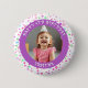 Happy Birthday to you, add name, age and photo to this personalised birthday button. Cute pink and purple confetti background.